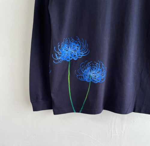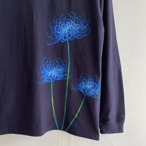 手描き青い彼岸花柄袖リブロングTシャツを追加しました。
