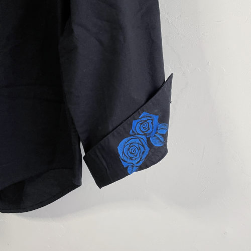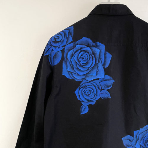 HPの方から黒地のシャツに青いバラを描いてほしいとの事でご依頼頂きました。