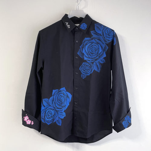 11月にAdoさんのライブへ行くのに着用されたいとの事でAdoさんをイメージした青いバラのデザインを、とのご希望でデザインをさせて頂きました。